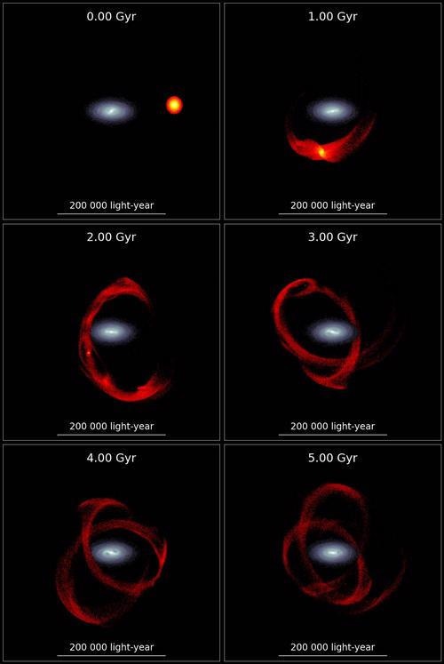 The simulated process of Cetus Stream progenitor merging with the Milky Way. Image Credit: Jiang Chang.